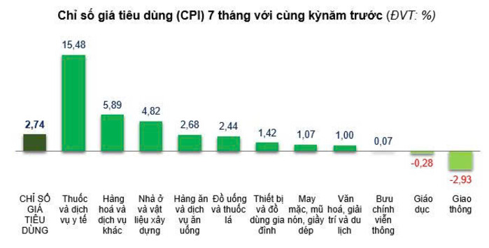 - Các yếu tố làm tăng CPI bình quân 7 tháng năm 2025: